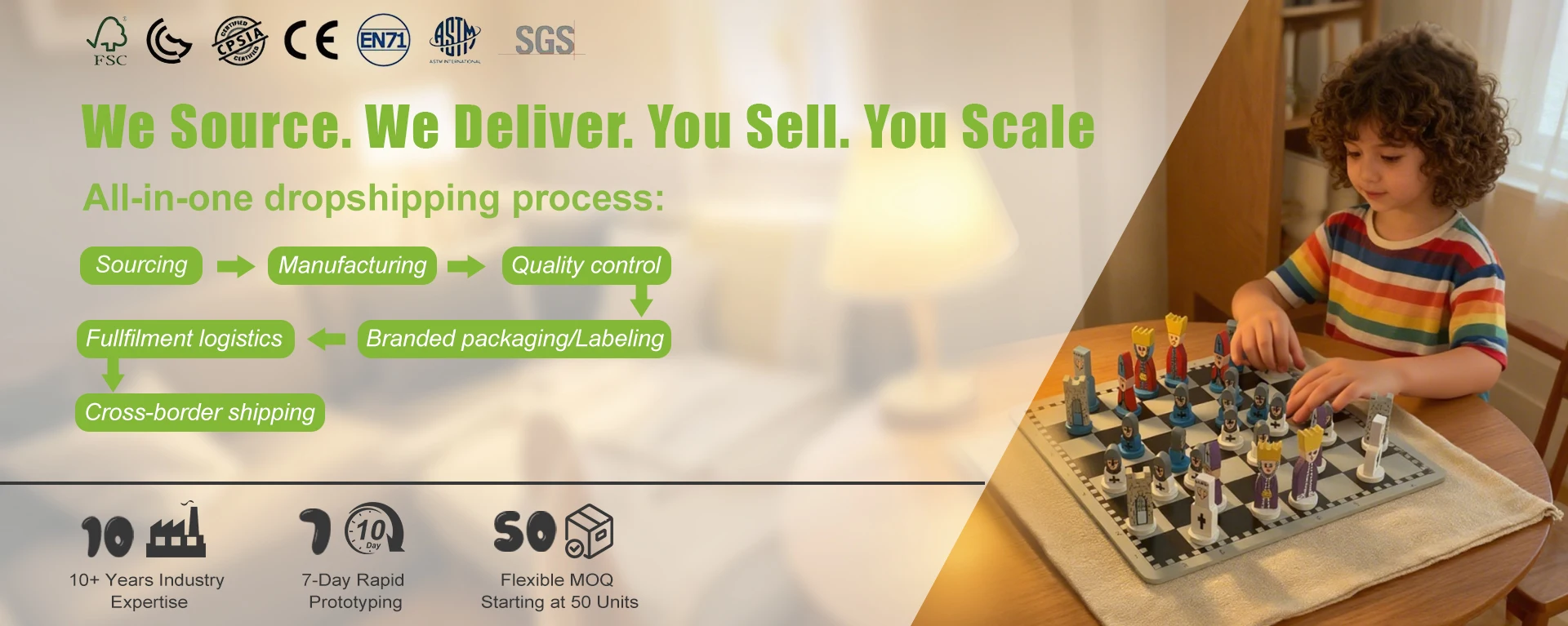 A global provider of Montessori educational toys, dedicated to offering a full-chain service from concept to shelf for all brands and wholesalers. Through "joint research and development, flexible production, and compliance guarantee"